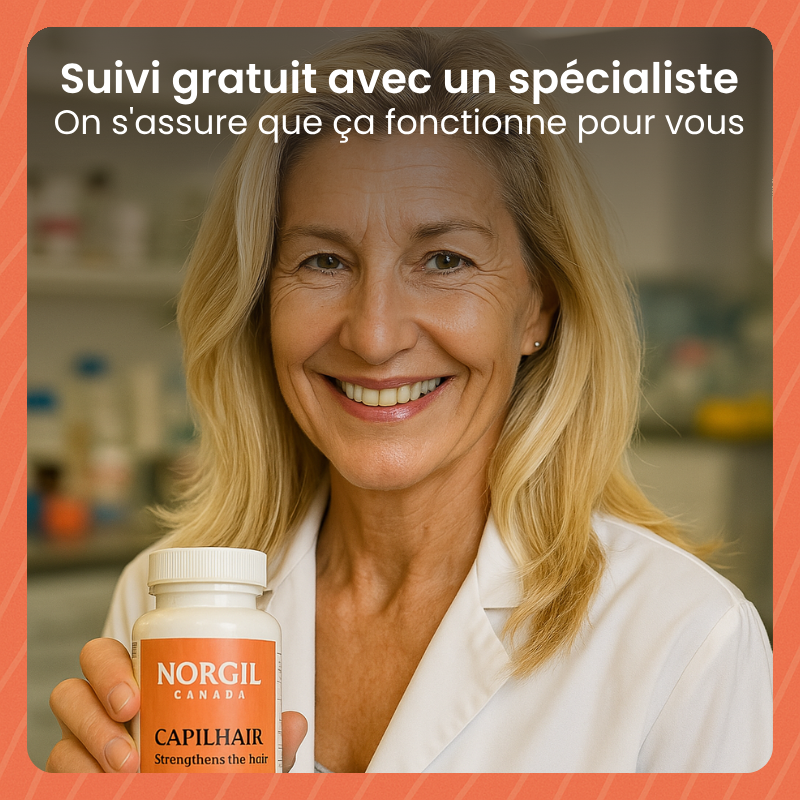 Après 27 ans en clinique, Manon, naturothérapeute certifiée, experte en perte de cheveux et propriétaire de Norgil, met son expertise au service de traitements conçus avec soin, rigoureusement testés et recommandés par les meilleurs professionnels de la santé capillaire.